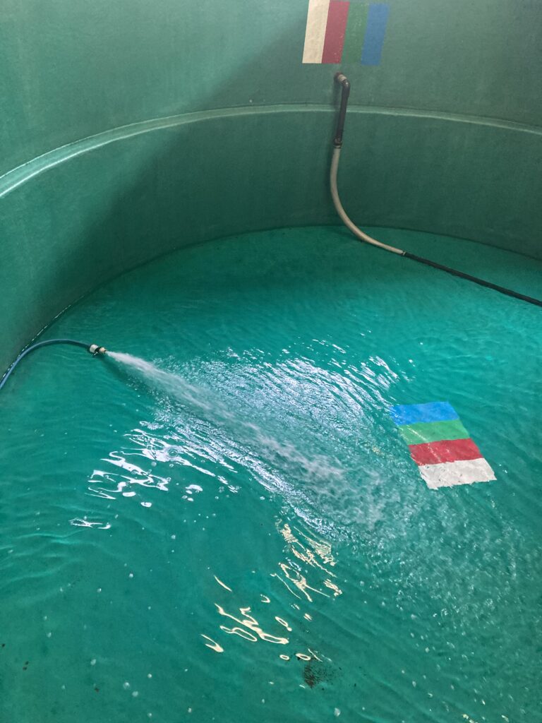 水深約2メートル。このプールで水中ドローンや井戸カメラを動かしています。